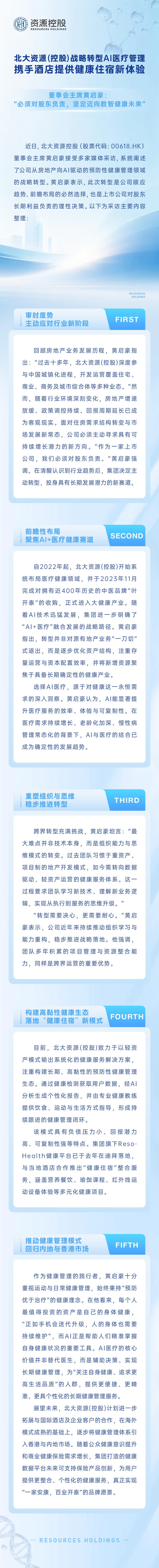 北大资源(控股)战略转型AI医疗管理,携手酒店提供健康住宿新体验